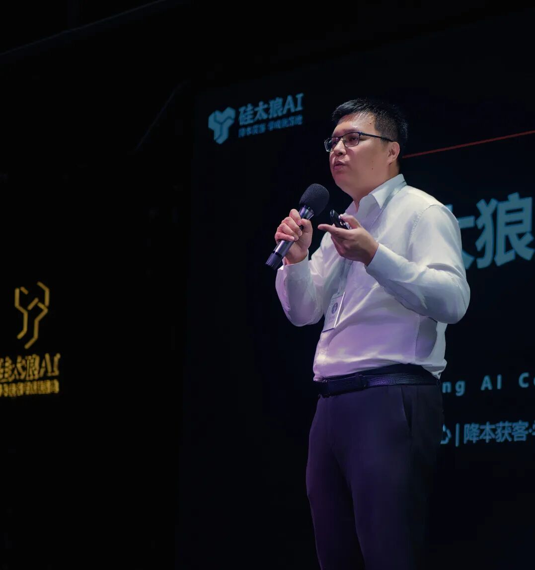 在主旨演讲环节,两位“硅太狼”核心讲师——薛力铭(花名“雪大狼”)与杨晓峰(花名“喜杨杨”)分别带来了《AI时代,企业该如何应对》和《AI短视频流量霸权获客+AIGC行业深度应用》两场高质量内容输出。