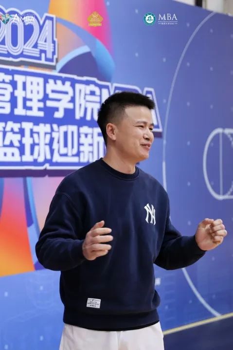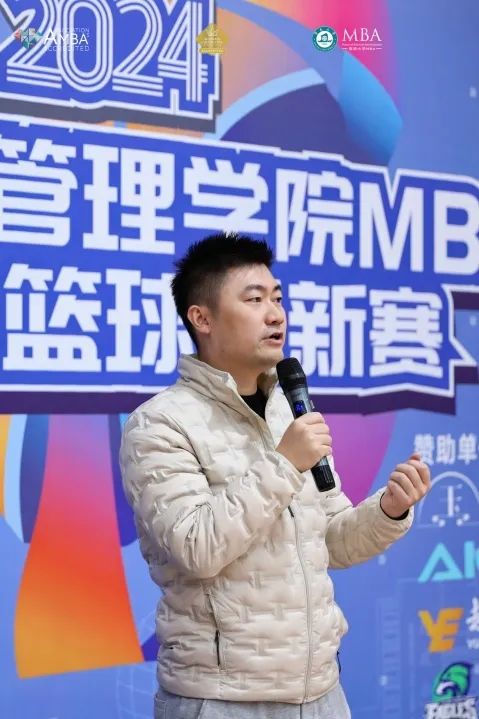 暨南大学 MBA 联合会副主席高鲁川在致辞中表达了对赛事筹备团队的感谢,他指出,此次联赛为 MBA 学子提供了一个展示自我、释放激情的平台,期待同学们能在比赛中收获宝贵的经验与深厚的情谊。MBA 篮球俱乐部会长詹勇亮分享了俱乐部的发展历程以及举办本次联赛的初衷,希望通过篮球运动,凝聚更多MBA学生和校友的力量,推动MBA校园体育文化的繁荣发展,传播暨南大学MBA的品牌影响力。