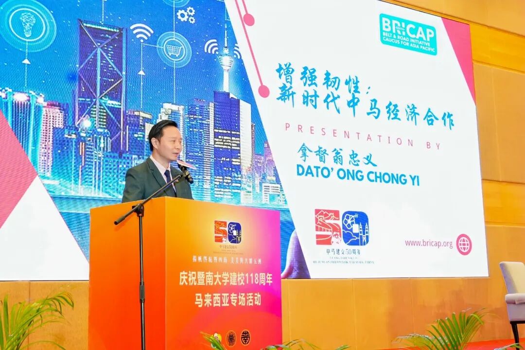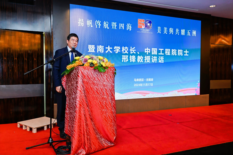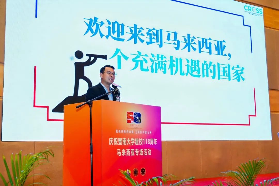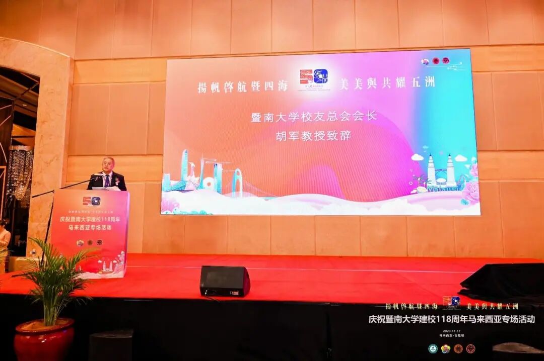 本次活动主题为“扬帆启航暨四海,美美与共耀五洲”,秉持中国企业出海首重文化输出理念,契合传播中华优秀传统文化号召。暨南大学建校 118年坚守华侨教育使命,与国家发展、民族复兴紧密相连。胡军在致辞中对各单位及校友们的付出表达诚挚感谢。他谈到,暨南大学历史悠久、校友遍布全球,坚信暨南人能让中马友谊更淳厚、关系更牢固、合作更宽广。期望校友借此契机深入了解马来西亚,为母校发展建言,助力华侨高教事业,拓展国际化视野、搭建沟通桥梁、谱写友谊新篇。