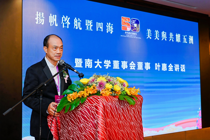 暨南大学董事会董事叶惠全表示,第一次走出家门看外面的世界,感谢马来西亚校友会及新加坡校友会的用心、用情、真心地为校友们的付出。叶惠全呼吁校友们,共商、共建、共享、共赢,一起擦亮暨南大学的金字招牌,因为暨大是我家,我爱我家。